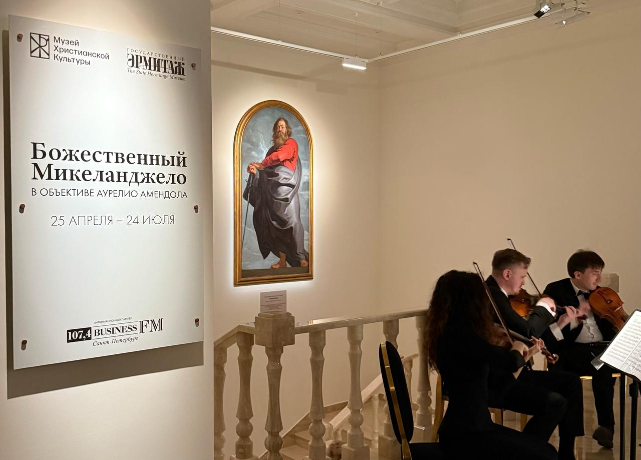 В петербургском Музее христианской культуры 24 апреля состоялось торжественное открытие фотовыставки «Божественный Микеланджело в объективе Аурелио Амендола», приуроченной к 550-летию со дня рождения великого мастера эпохи Возрождения Микеланджело Буонарроти.