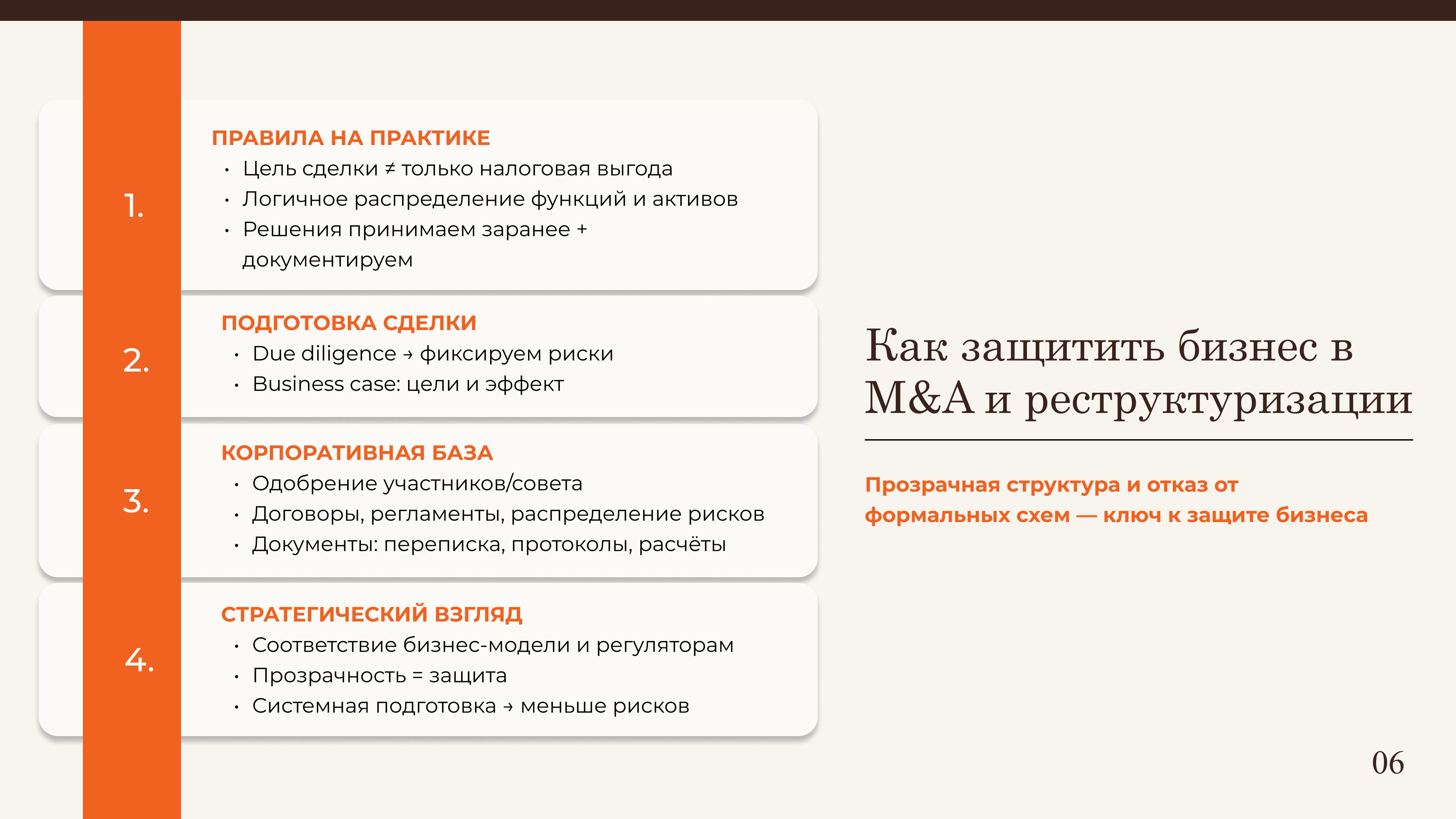 И помните, прозрачность структуры и отказ от формальных схем сегодня являются не уязвимостью, а одним из ключевых элементов защиты бизнеса.