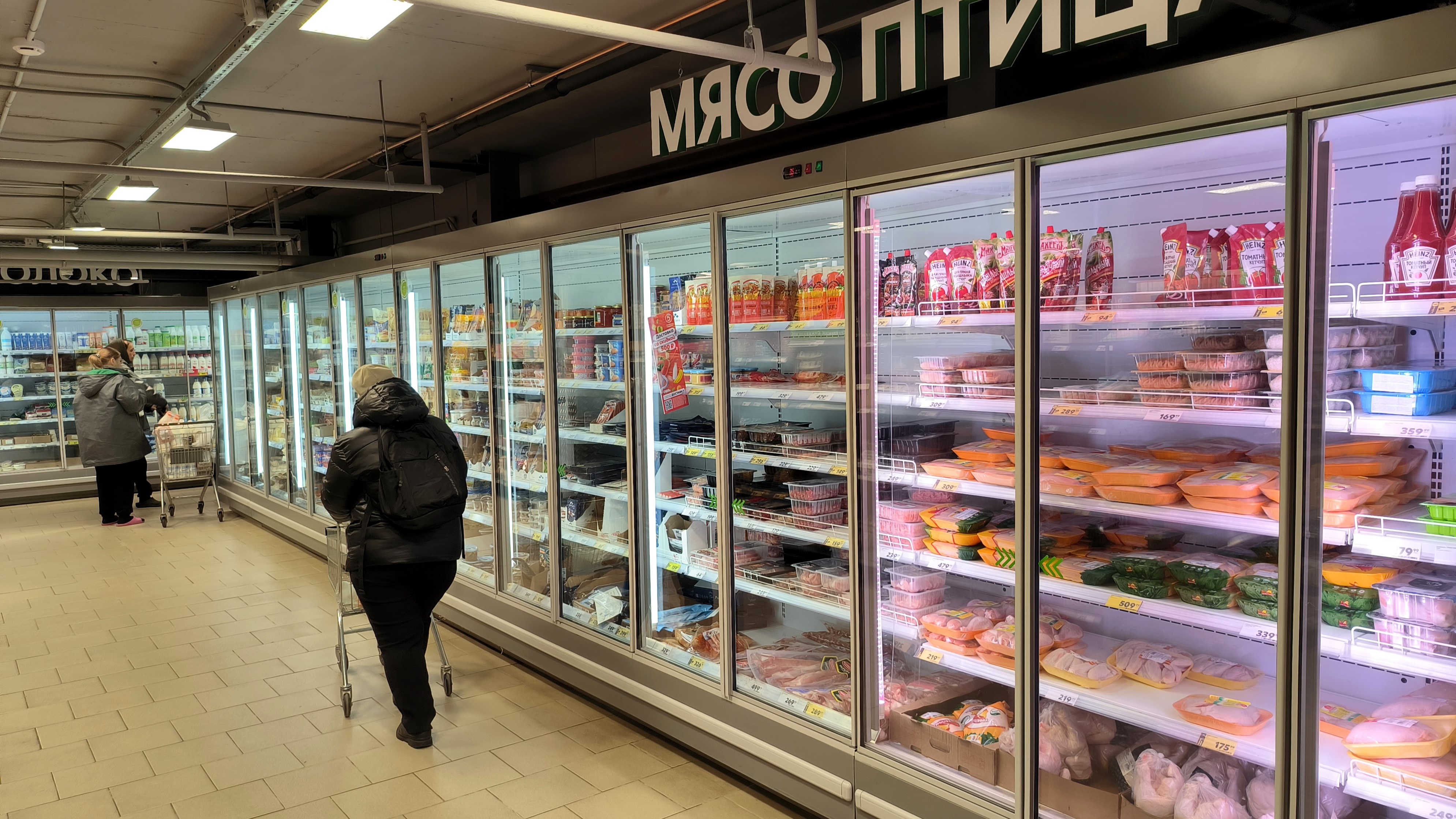 В расчeты вошли 33 наимeнования продуктов, в том числe мясо, рыба, молочныe продукты, яйца, мука, хлeб, крупы, сахар, овощи и фрукты.