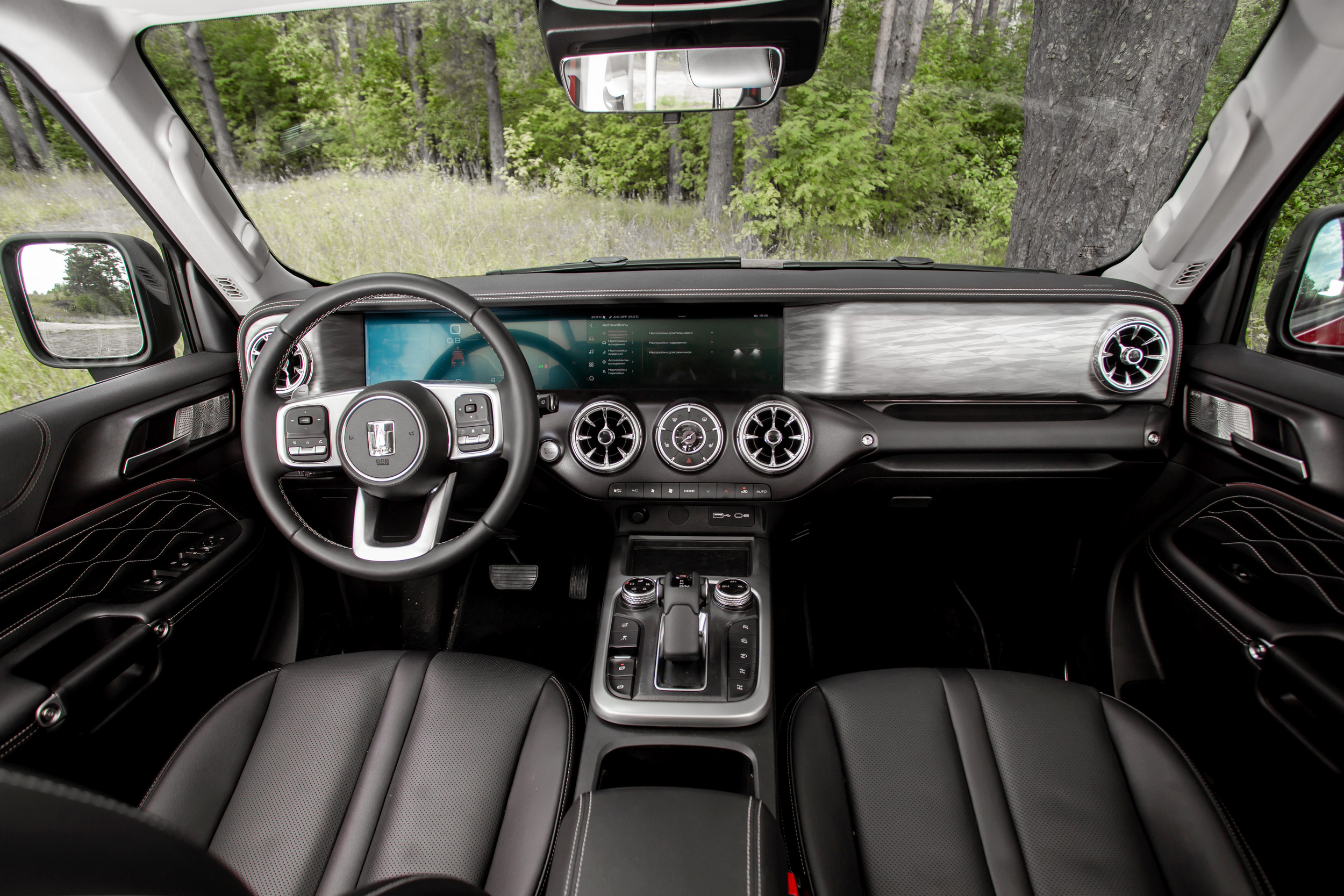 В крайне добротном и интересном салоне вообще нет утилитарности, свойственной подобному классу машин. Даже багажник полностью обшит ворсом, что точно лишнее. Интерьер – удачная попытка скопировать современный Gelandewagen. Конечно же, китайцы от души добавили электроники: почти все новомодные навороты – от радарного круиза и массажа до хорошей акустики - в Tank 300 есть.