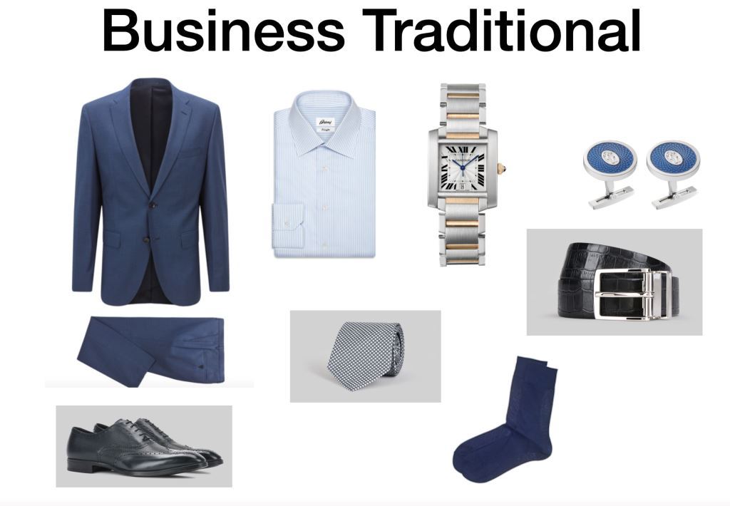 Business Traditional — это самый распространённый и универсальный консервативный деловой дресс-код. Младший брат высокого стиля Business Best. Традиционный, немного скучный и очень формальный. Исторически начнём с особенностей мужского конвенционального гардероба, ибо этот стиль был изобретён именно для них, женщины всего лишь его адаптировали.